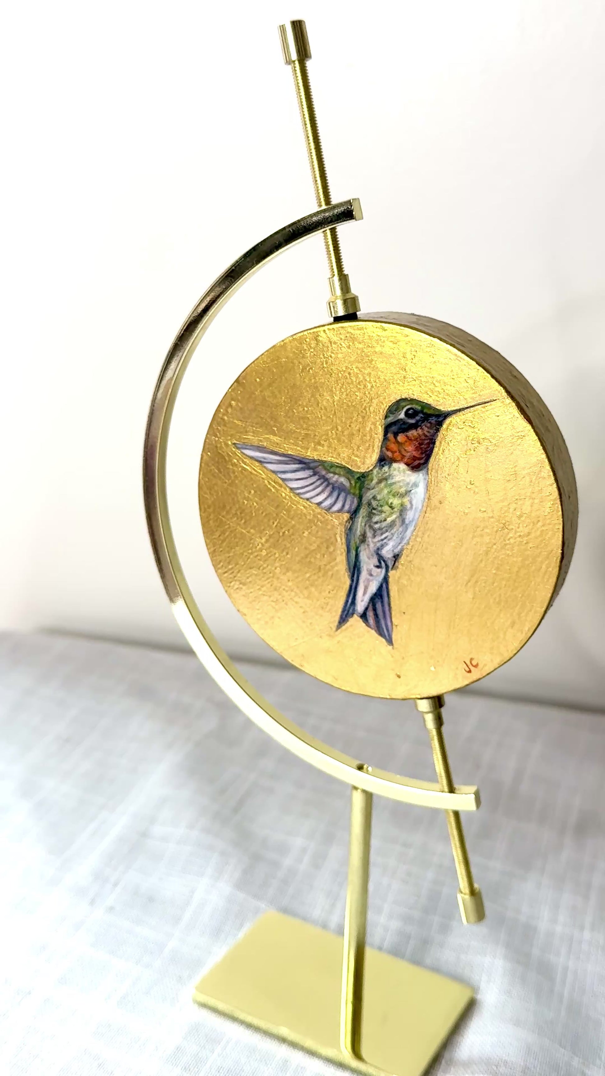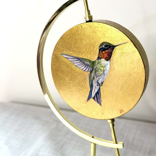 Ruby-throated Hummingbird Oil Painting + Gold Leaf